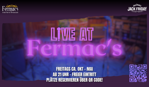 Live at FERMAC’s – Friday Live Music at the Pub LIVE MUSIC AT FERMAC’S! Freitags findet in während der „Indoor“-Saison bei uns LIVE… Continue reading “Live at FERMAC’s – Friday Live Music at the Pub”…
