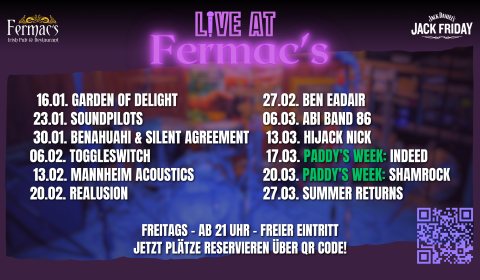 Live at FERMAC’s – Friday Live Music at the Pub LIVE MUSIC AT FERMAC’S! Freitags findet in während der „Indoor“-Saison bei uns LIVE… Continue reading “Live at FERMAC’s – Friday Live Music at the Pub”…